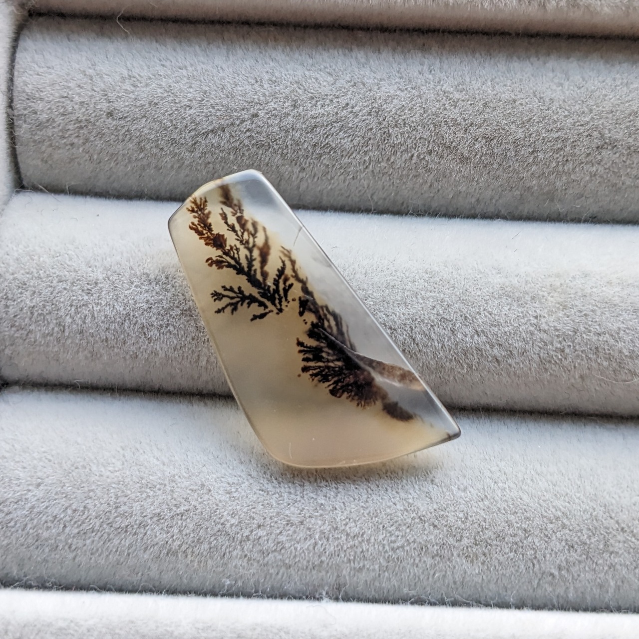 黄昏ブラウンオレンジ✕黒い木の陰模様の鮮やかなデンドリティックアゲートです。