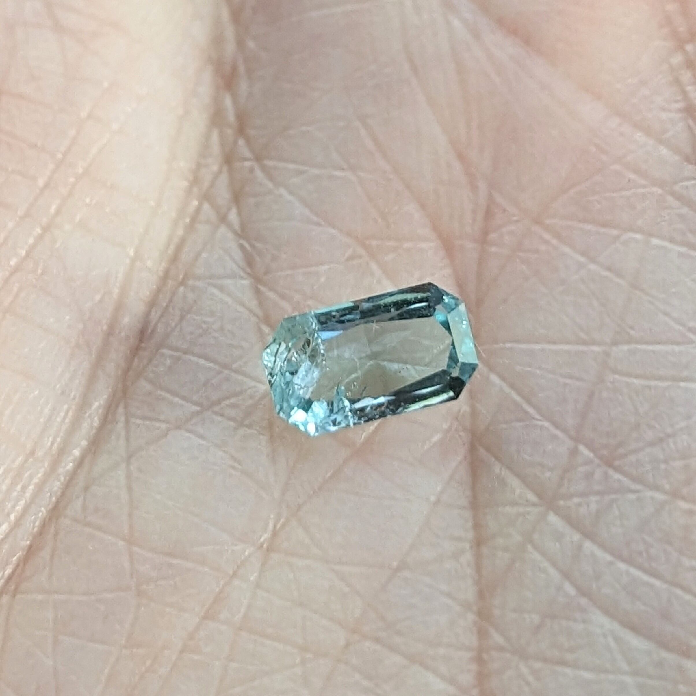 自然光で見ると上質なグランディディエライトのような緑味のあるライトブルー